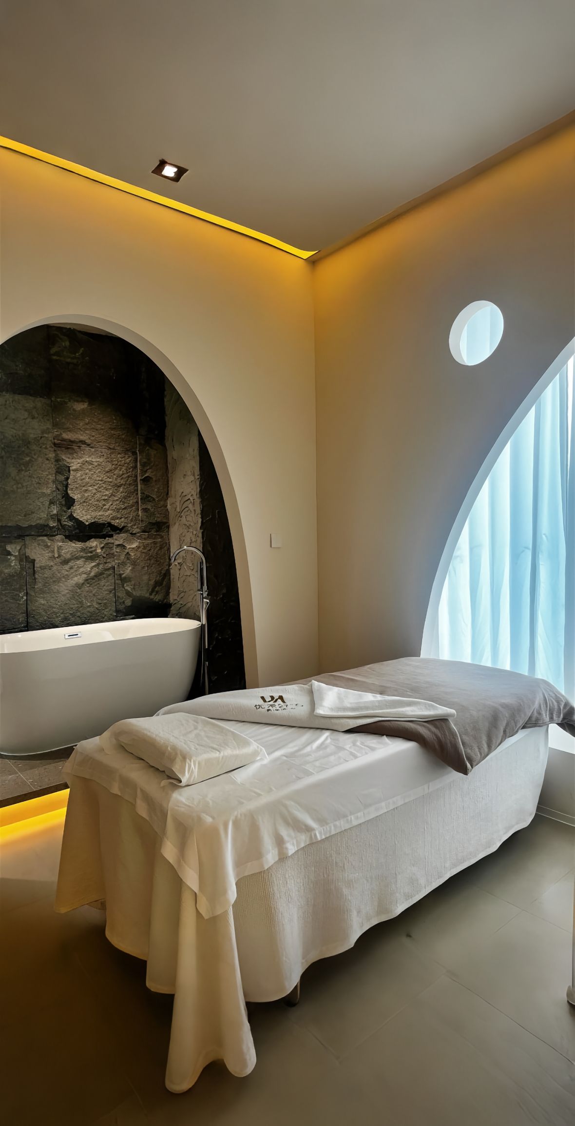 鼎御装饰为广州兰蕊·法式美容SPA科技养肤中心打造的110㎡侘寂风空间,以“洗尽铅华”为核心理念,摒弃繁复装饰,运用微水泥墙面、原木家具与亚麻织物等天然材质,营造质朴静谧的氛围。